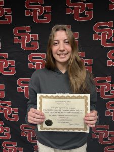Senior Juliet Percenti had an outstanding performance at the NY State swim meet, securing the title of state runner-up in both the 50 and 100 Freestyle, just missing first place by a mere .01 seconds. This achievement marks her fourth appearance at states, where she has consistently earned multiple top-three finishes throughout her career.