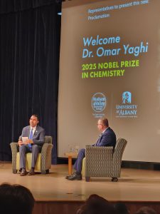 A notable alumnus of HVCC and the University at Albany, Dr. Yaghi received the Nobel Prize in Chemistry in 2025. He shared this honor with Susumu Kitagawa and Richard Robson for their groundbreaking work on metal-organic frameworks (MOFs). These innovative structures have transformed the fields of clean energy and environmental remediation.